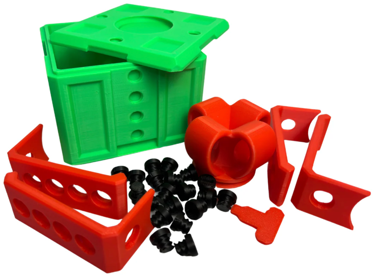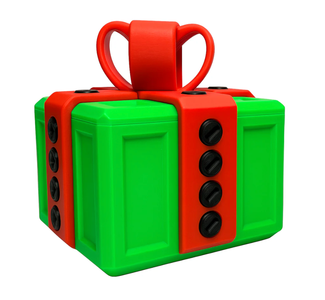 Otravný dárek obsahuje 20 pevných šroubů, které bezpečně uzavírají každou stranu a vytvářejí tak další úroveň výzvy pro obdarovaného. Šrouby dodávají zábavný prvek – příjemce musí všechny postupně odšroubovat, aby se dostal k překvapení uvnitř!