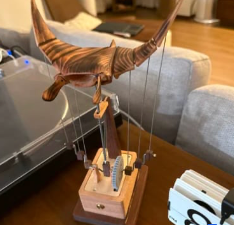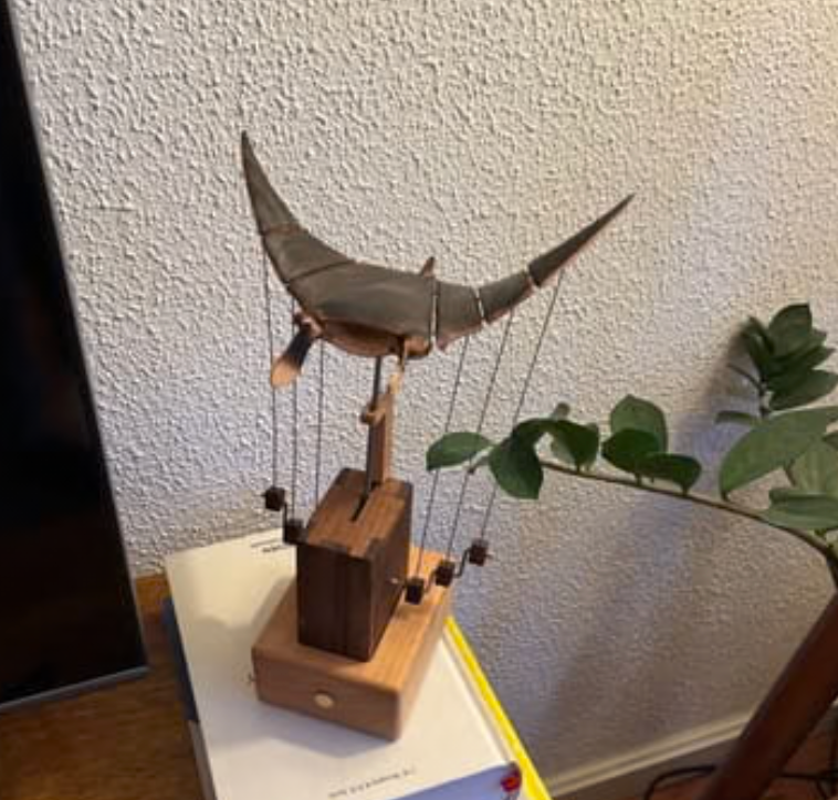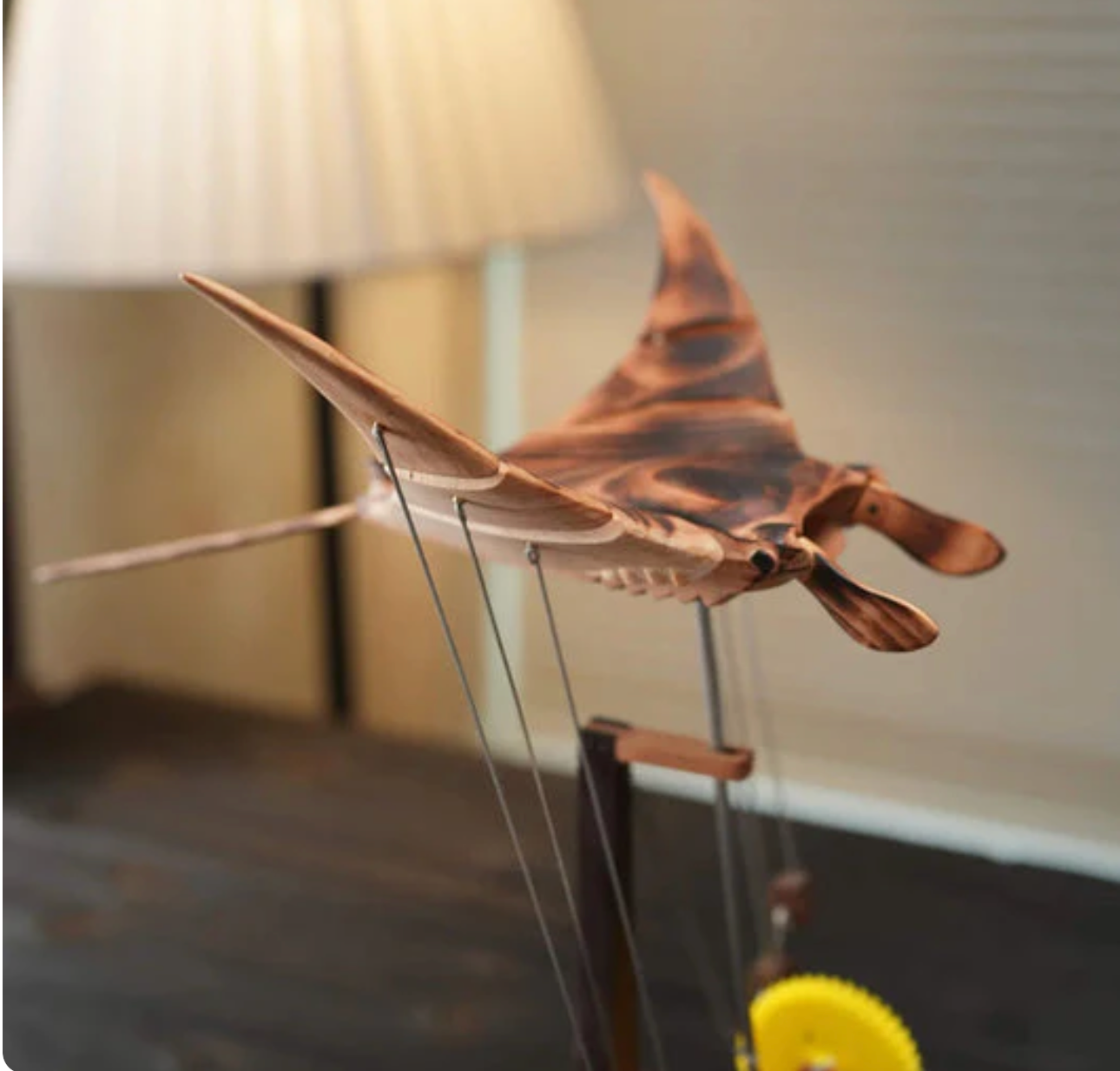 Cítíš tlak u pracovního stolu? Nemůžeš se soustředit nebo pořád bezmyšlenkovitě scrolluješ? Nech na sebe působit klid oceánu. Tato ořechová manta se jemně pohybuje s každým otočením kliky. Její převody se hýbou v plynulém rytmu a mění stres v tiché, uklidňující gesto.